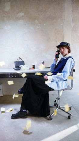 The third, yet also the first conceptual campaign for The Vault Concept should be taken with a grain of salt. Or should it? The campaign plays with elements of an office environment combined with mischievous employees who don’t hold much love for their jobs. This opens up space for creative and imaginative outfits.